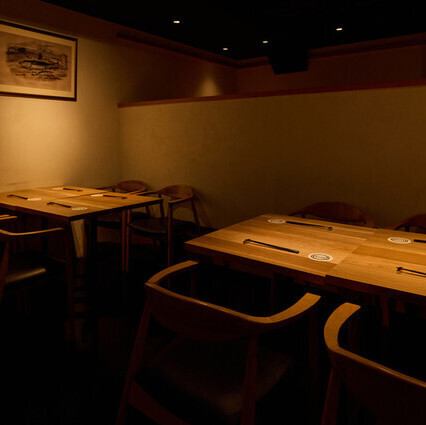 吧台共有九個座位。餐廳環境雅緻,燈光柔和,是度過特殊時光的絕佳場所。即使您是獨自旅行的女性,也歡迎隨時入住。半私人房間最多可容納四人。