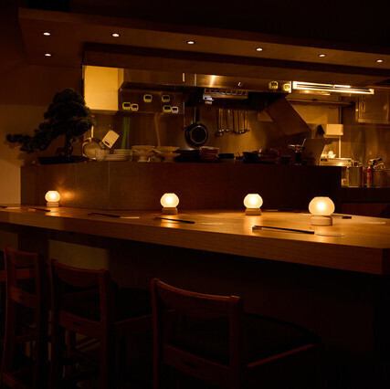 吧台座位可供 1 至 3 人使用。櫃檯前面是溫暖的木質空間,那裡是一個開放式廚房,您可以近距離觀看廚師們精湛的烹飪技能。無論你是獨自一人還是與伴侶約會,你都可以在這裡享受一段輕鬆而特別的時光。